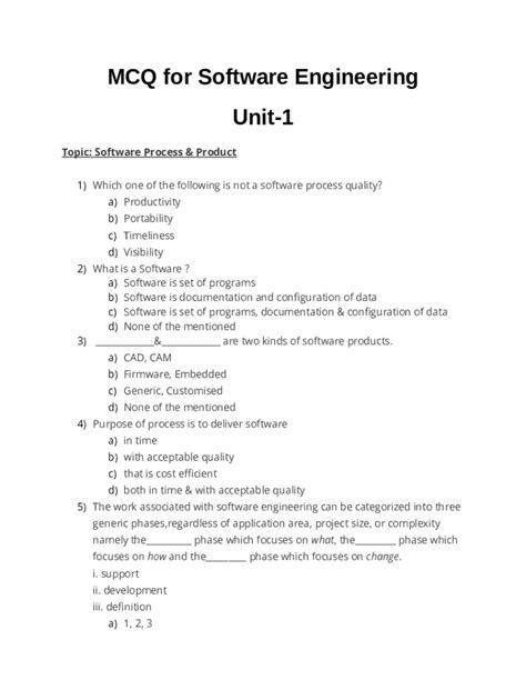 Download Multiple Choice Questions And Answers Of Software Engineering Doc