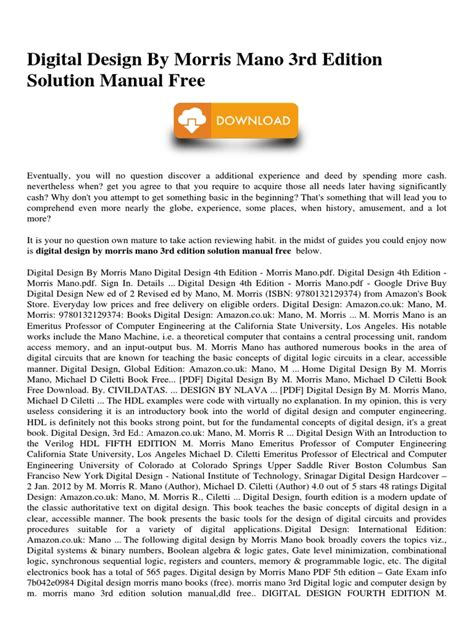 Read Online Digital Design Mano 3rd Edition Solution Manual PDF By Click Button. Digital Design Mano 3rd Edition Solution Manual it’s easy to recommend a new book category such as Novel, journal, comic, magazin, ect. You see it and you just know that the designer is also an author and understands the challenges involved with having a good book. You can easy klick for detailing book and you can read it online, even you can download it
